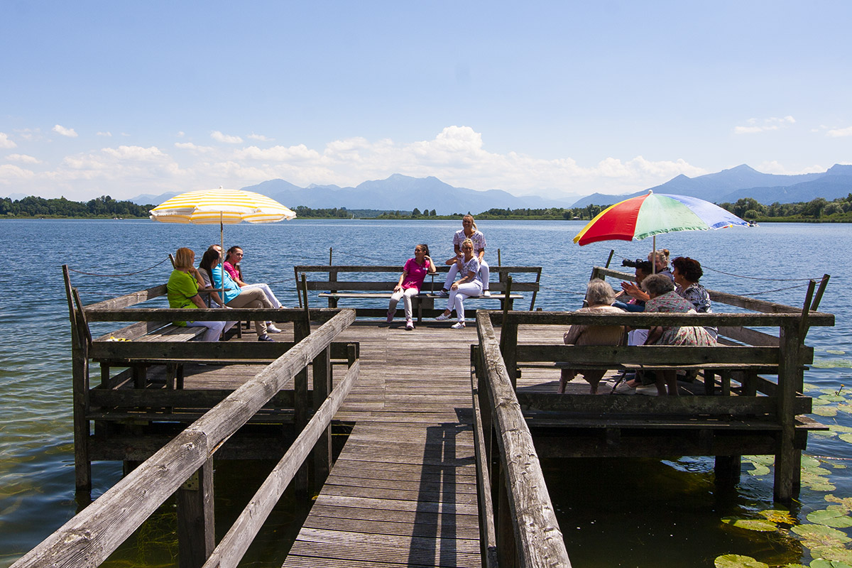 Umgeben von weitläufigen Außenanlagen bis hinunter zum hauseigenen Ufer- und Bootssteg am Chiemsee, mit alten Baumbeständen, Terrassen und Spazierwegen, entsteht ein Alltag mit viel frischer Luft, Naturerlebnis und Blick auf See und Alpen. Gerne können Sie sich auch persönlich einen Eindruck davon machen, wie wohltuend und alltagsnah das Wohnen im Siebenbürgerheim gestaltet ist.
